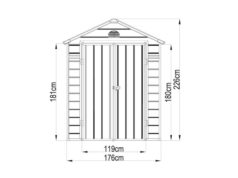 Dvojité křídlové dveře o rozměrech š 119 x v 181 cm zajišťují pohodlný přístup, zatímco síla plastové stěny 12 mm a sedlová střecha výrazně snižují tlak sněhu, čímž zvyšují odolnost domku vůči nepříznivým povětrnostním podmínkám.