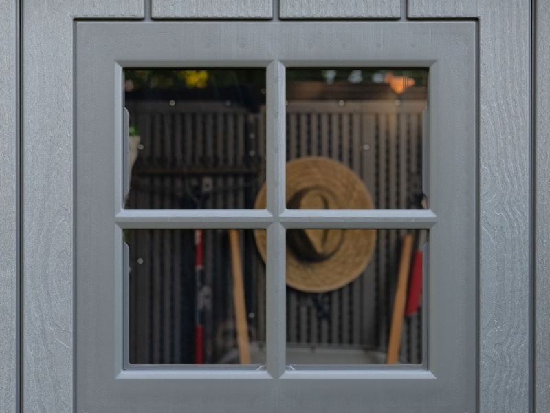Domek je vybaven dvěma okny z polykarbonátu o rozměrech 58×58 cm, hřebenovým oknem po celé délce střechy a ventilačními mřížkami vpředu i vzadu, které zajišťují přirozené proudění vzduchu. K dispozici je také 6 závěsných háčků pro praktické uspořádání nářadí.