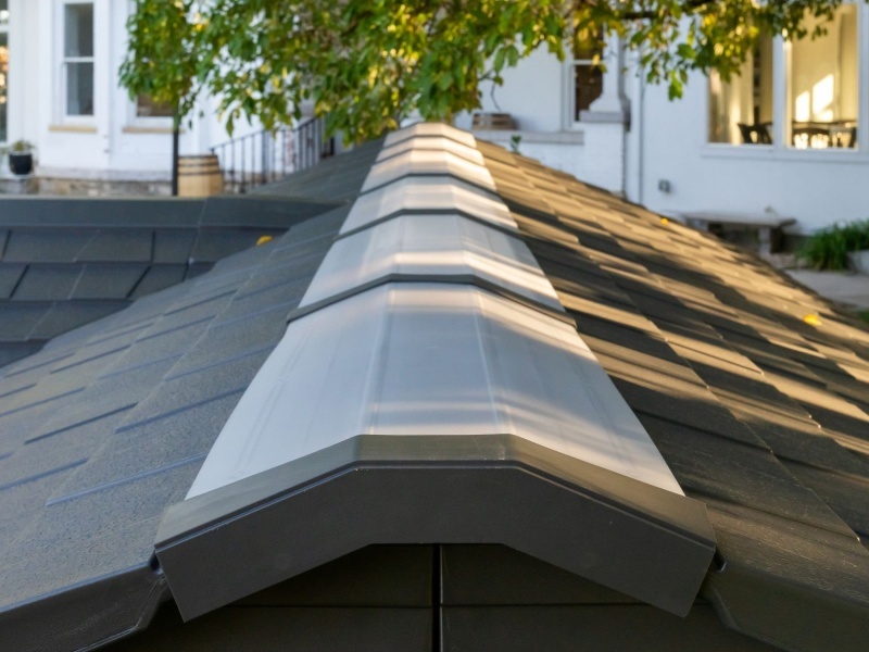 Střecha se sklonem 30° účinně odvádí sníh i dešťovou vodu. Domek je testován na zatížení střechy až 115 kg/m² a odolnost proti větru do 113 km/h, což dokládá jeho spolehlivost i při extrémním počasí.
