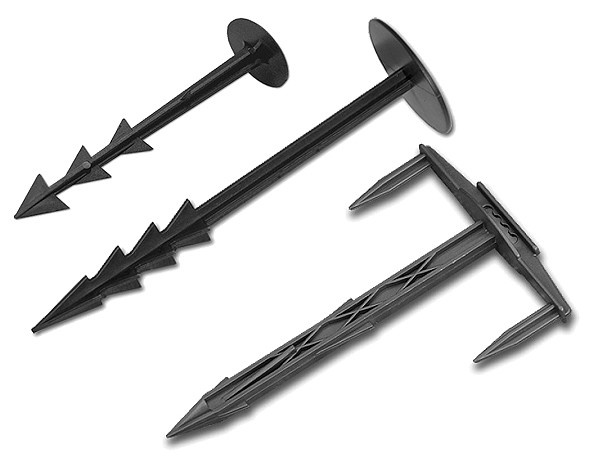 Plastové kotvící kolíky se používají k ukotvení netkané textilie při natahování na záhon, zabraňují shrnování textilie a chrání ji proti odfouknutí větrem.