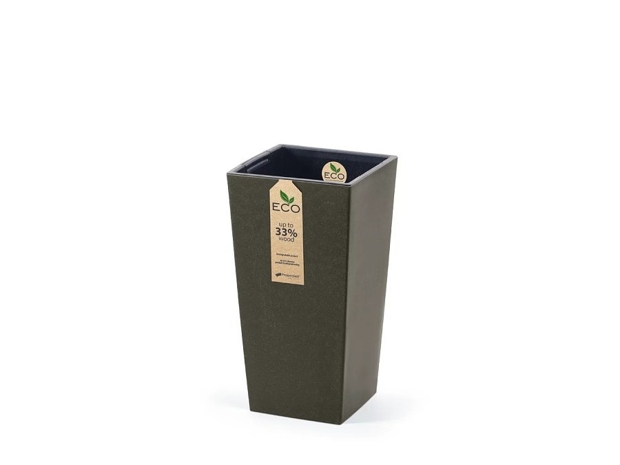 Vysoký květináč je vyroben z plastu v kombinaci s přírodním dřevem. To je získáváno za pomoci pokročilé technologie recyklace. Během tohoto procesu je recyklován přírodní odpad získaný při zpracování dřeva. Ten je pak využit jako unikátní a originální komponent pro výrobu kolekce ECO Wood. Květináč Urbi Square ECO Wood je ze 33 % vyroben ze dřeva.