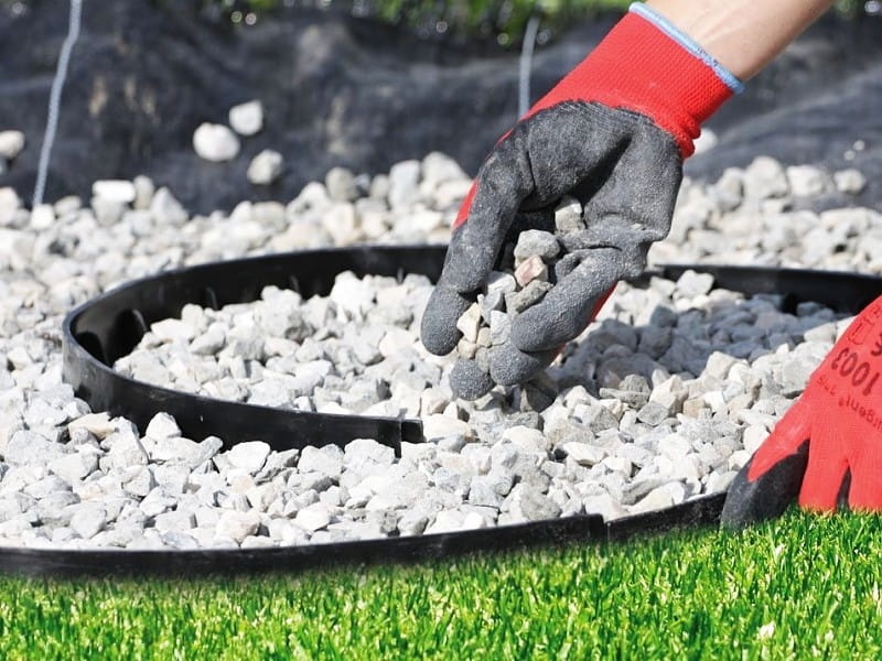 Pokud chcete oddělit plochu s mulčovací kůrou od zahradních cestiček, můžete umístit agrotextílii na povrch zbavený plevele a poté nainstalovat neviditelné obrubníky.