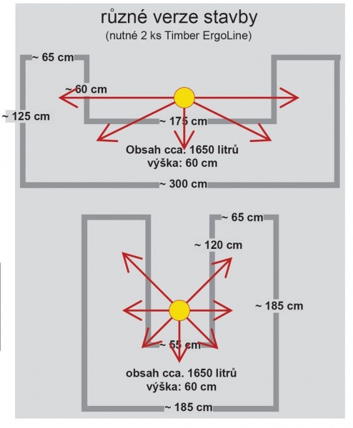 Každé patro vysokého záhonu je složeno ze 12-ti „kamenů“. Je možné seskládat 2× JUWEL TIMBER ERGOLINE do různých sestav. Vysoký záhon nemá pevné dno.