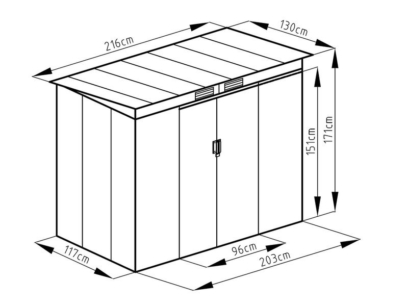 Kovový zahradní domek Halle 74 patří mezi špičku zahradních domků na trhu. Tento zahradní domek s pultovou střechou je dokonalým úložištěm pro vaše zahrádkářské, sportovní, bazénové, grilovací, campingové nebo motoristické potřeby.