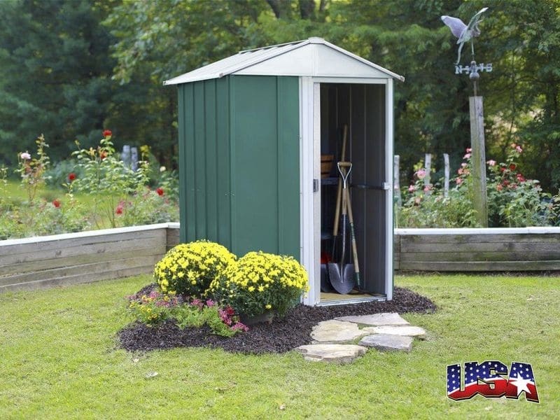 Prakticky řešený kovový zahradní domek na nářadí klasického designu k uskladnění zahrádkářských, sportovních, bazénových, grilovacích, campingových, motoristických potřeb. Domky ARROW patří mezi nejrenomovanější značku zahradních domků na světových trzích.