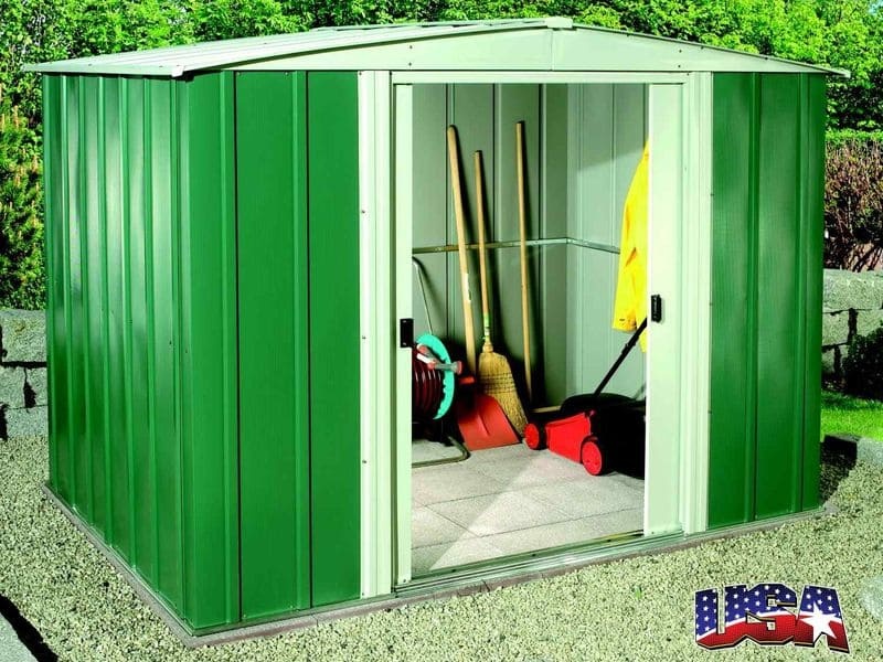 Prakticky řešený kovový zahradní domek na nářadí klasického designu k uskladnění zahrádkářských, sportovních, bazénových, grilovacích, campingových, motoristických potřeb. Domky ARROW patří mezi nejrenomovanější značku zahradních domků na světových trzích.