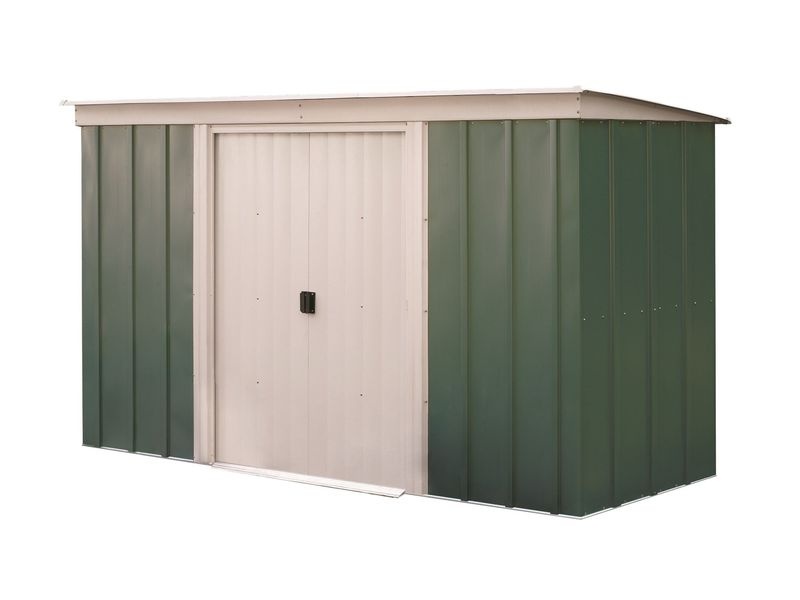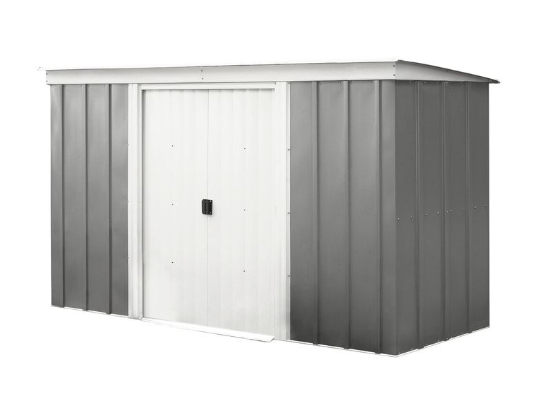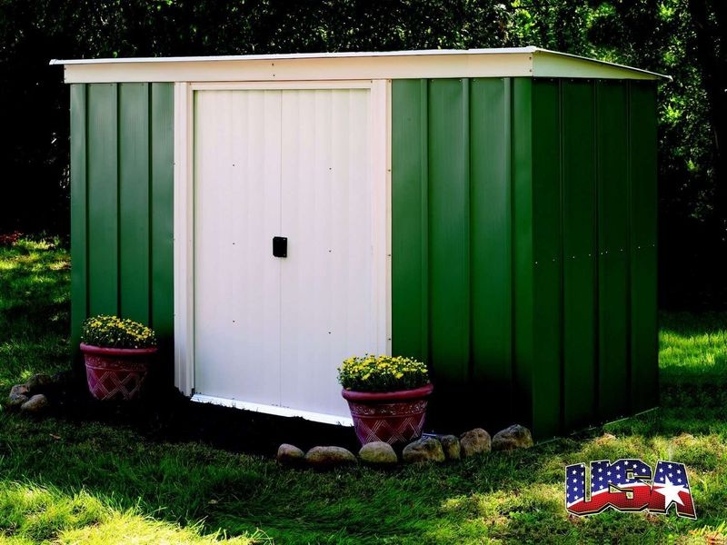 Menší plechový zahradní domek s pultovou střechou k uskladnění zahrádkářských, sportovních, bazénových, grilovacích, campingových, motoristických potřeb. Zahradní domky ARROW patří mezi nejrenomovanější značku zahradních domků na světových trzích.