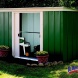 Pozor – plechový zahradní domek má v reálu kombinaci barev zelená a slovnová kost. Reálné odstíny mohou být lehce odlišné od barvy na obrázcích (velmi záleží na nastavení barev na monitoru).