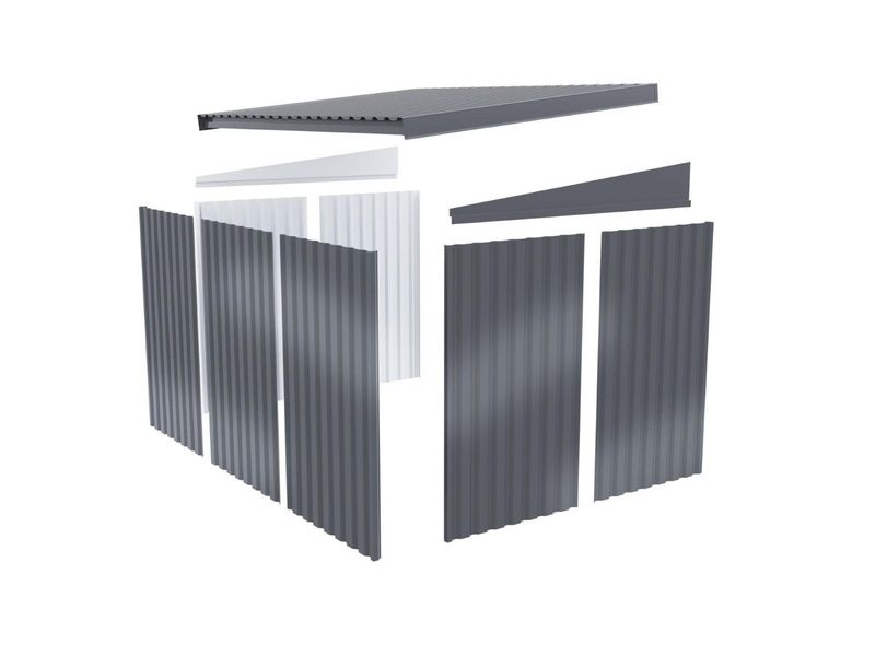 Moderní plechový domek KARIBU IRIDIUM 3 nabízí velkorysý úložný prostor a robustní konstrukci kombinující kovové opláštění s nosným rámem z lepeného lamelového dřeva (BSH). Tato konstrukce zajišťuje vysokou stabilitu, přesnost montáže a dlouhou životnost celé stavby.