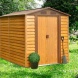 Plechový zahradní domek na nářadí. Barva dřevokor. Rozměry: 2,36×1,95×2,09 m (š×d×v). Stěnové panely jsou pokryty fólií, která zabraňuje poškrábání před montáží. Zastavěná plocha: 4,60 m2.