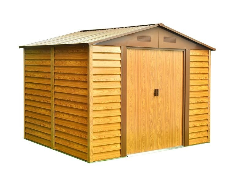 Kovový zahradní domek je vyrobený z pozinkovaného vodorovně profilovaného plechu a vzhledově (designově i barevně) se přibližuje dřevěnému domku. Domek je možné použít k uskladnění zahrádkářských, sportovních, bazénových, grilovacích, campingových, motoristických a dalších potřeb.