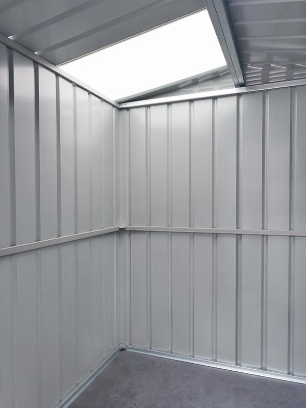 Všechny zahradní domky GLOBEL se od běžné produkce odlišují i jedinečným prosvětlením střechy, kterým je opatřen každý model. Pevné zabudované střešní okno je vyrobené tak, že jeden plechový díl střechy je nahrazen rozměrově shodným dílem ze sklolaminátu. Díky prosvětlení střechy je v domku dostatek světla