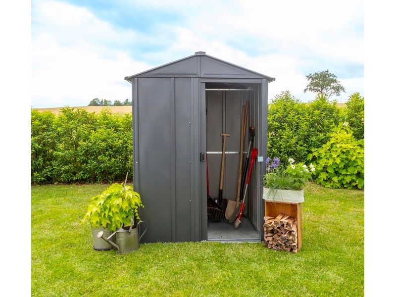 Nadčasový a prostorný kovový přístřešek nabízí stabilní konstrukci, která je odolná proti korozi a poškrábání. Slouží k uskladnění zahrádkářských, sportovních, bazénových, grilovacích, campingových a jiných potřeb.