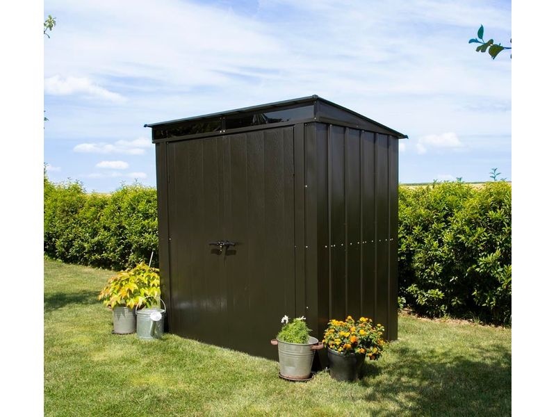 Zahradní domek plechový je vyrobený z elektrolyticky pozinkovaného ocelového plechu. Stylovou kůlnu navíc doplňují dvojité otočné dveře, s nimiž se snadno manipuluje díky klice na obou dveřích. Vnitřní vybavení můžete bezpečně uzamknout pomocí integrovaného zámku na klíč.