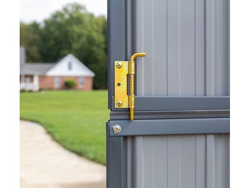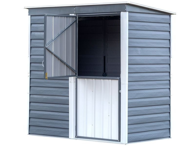 Zahradní domek plechový je vyrobený z elektrolyticky pozinkovaného ocelového plechu. Stylovou kůlnu navíc doplňují dvoudílné dveře, které lze uprostřed rozdělit, a zajistit tak optimální cirkulaci vzduchu. Zařízení pro visací zámek umožňuje zabezpečit vnitřní vybavení (visací zámek není součástí dodávky).