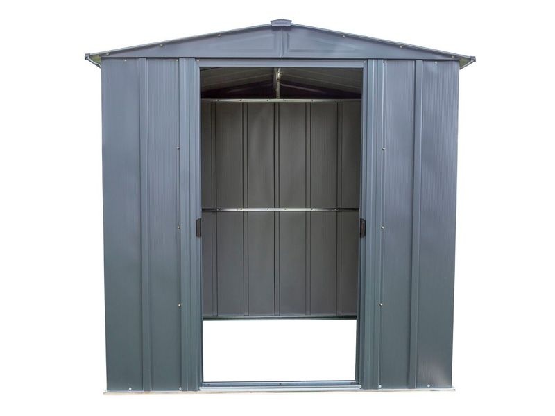 Zahradní domek plechový je vyrobený z elektrolyticky pozinkovaného ocelového plechu. Stylovou kůlnu navíc doplňují dvojité posuvné dveře, s nimiž se snadno manipuluje díky madlu na obou dveřích. Vnitřní posuvné dveře, které šetří místo, navíc usnadňují otevírání a zavírání. Zařízení pro visací zámek umožňuje zabezpečit vnitřní vybavení (visací zámek není součástí dodávky).
