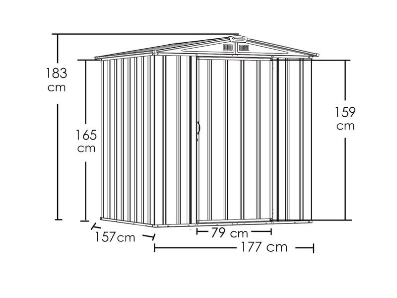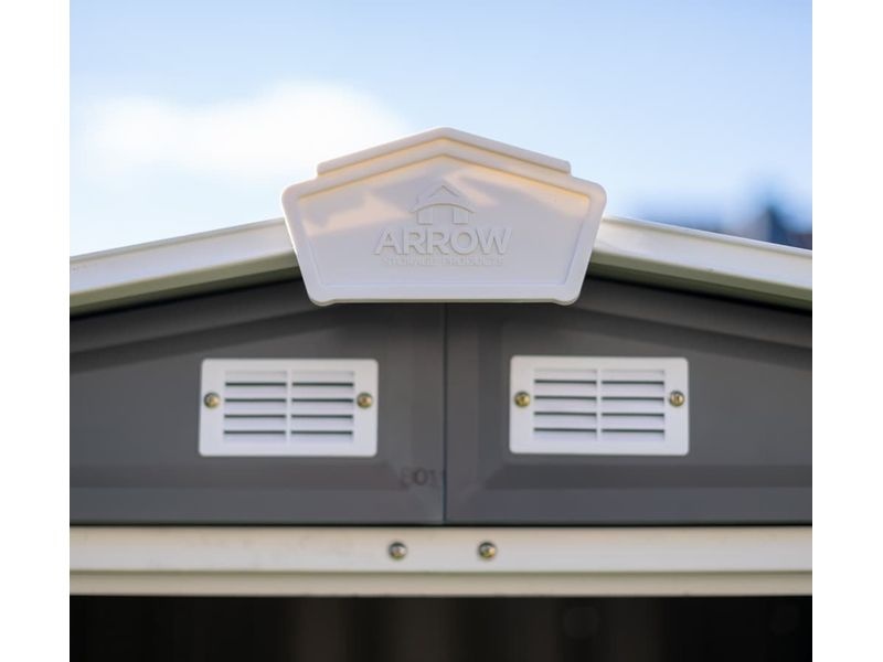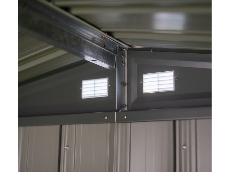 Klasický štít střechy zaujme větracími štěrbinami, které regulují teplotu a zlepšují cirkulaci vzduchu. To snižuje teplo a vlhkost ve vaší kovové kůlně.