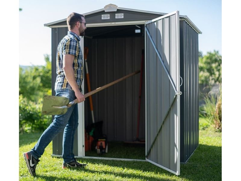 Nadčasový a prostorný kovový přístřešek nabízí stabilní konstrukci, která je odolná proti korozi a poškrábání. Slouží k uskladnění zahrádkářských, sportovních, bazénových, grilovacích, campingových, motoristických a jiných potřeb.