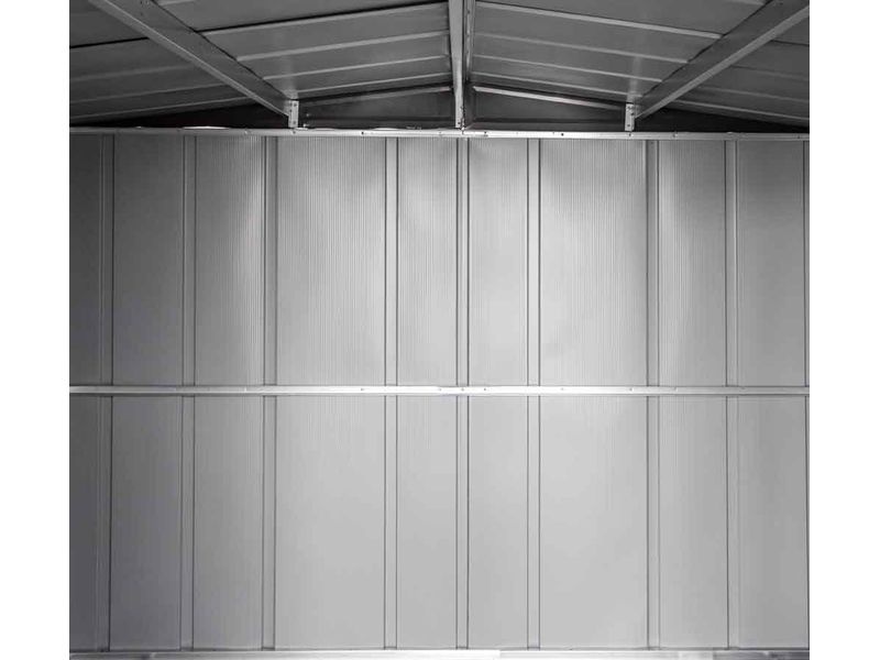 Zahradní domek plechový je vyrobený z elektrolyticky pozinkovaného ocelového plechu. Stylovou kůlnu navíc doplňují dvojité posuvné dveře, s nimiž se snadno manipuluje díky madlu na obou dveřích. Vnitřní posuvné dveře, které šetří místo, navíc usnadňují otevírání a zavírání. Zařízení pro visací zámek umožňuje zabezpečit vnitřní vybavení (visací zámek není součástí dodávky).