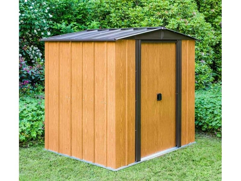 Zahradní kůlna spojuje všechny výhody extrémně robustní konstrukce z ocelového plechu se stylovým, přírodním dřevěným vzhledem. Na rozdíl od dřevěných přístřešků proto tento plechový přístřešek nevyžaduje žádnou pravidelnou péči ani údržbu.