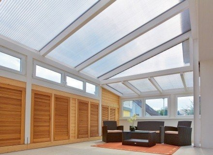 Vysoce kvalitní poly­karbonátové desky jsou ideálním řešením pro zateplené pros­klení stěn, případně střech. Dutinková struktura desek zároveň zabezpečuje v zimě udržení tepelné energie uvnitř, čímž šetří náklady na vytápění.