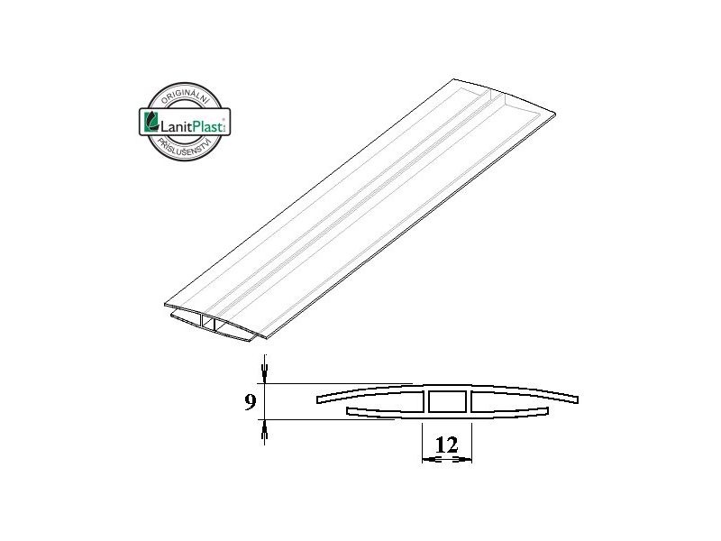 Spojovací H-profil z čirého polykarbonátu pro spojení dvou polykarbonátových desek. Pro sílu desek 6 mm.