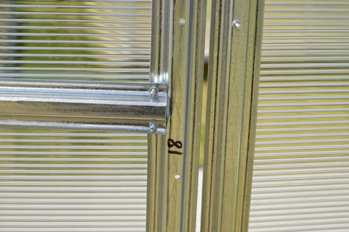 Konstrukce zahradního skleníku je sešroubovaná z pozinkovaných omega profilů o síle 0,70 – 0,85 mm. Materiál profilů je galvanicky pozinkovaný. Jednotlivá žebra nosných oblouků jsou od sebe vzdálena pouhých 60–80 cm, což je velká výhoda tohoto modelu skleníku oproti jiným výrobkům na českém trhu.