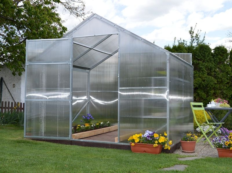 Součástí skleníku je prémiový dvoustěnný polykarbonát 8 mm se silným UV filtrem (na slunci a mrazu nekřehne ani nežloutne). Z důvodu zajištění maximální kvality je prosklení vyrobeno z kvalitního polykarbonátu MARLON (výrobce Brett Martin Velká Británie), který v ČR prošel náročnými testy ve státem akreditovaných zkušebnách jako stavební materiál.