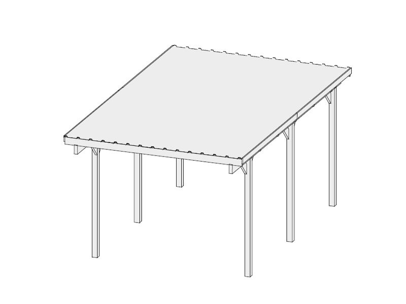 Dřevěný přístřešek pro auto (tzv. carport). Přístřešek byl vyroben v Německu. Tento model garážového stání výborně poslouží jako ochranný přístřešek pro váš automobil. Můžete ho využít jako dočasný úkryt zahradního traktůrku, lo­di nebo pod něj postavit sušák s prádlem, pokud váš venku překvapí déšť.