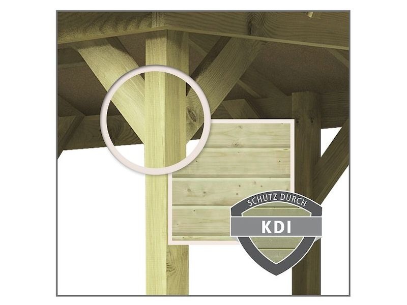 Konstrukce přístřešku je tlakově impregnována, a tím je dobře chráněna proti dřevokazným houbám a hmyzu, ale i proti nepříznivým povětrnostním podmínkám. Impregnace je zdravotně nezávadná a naprosto bezpečná.