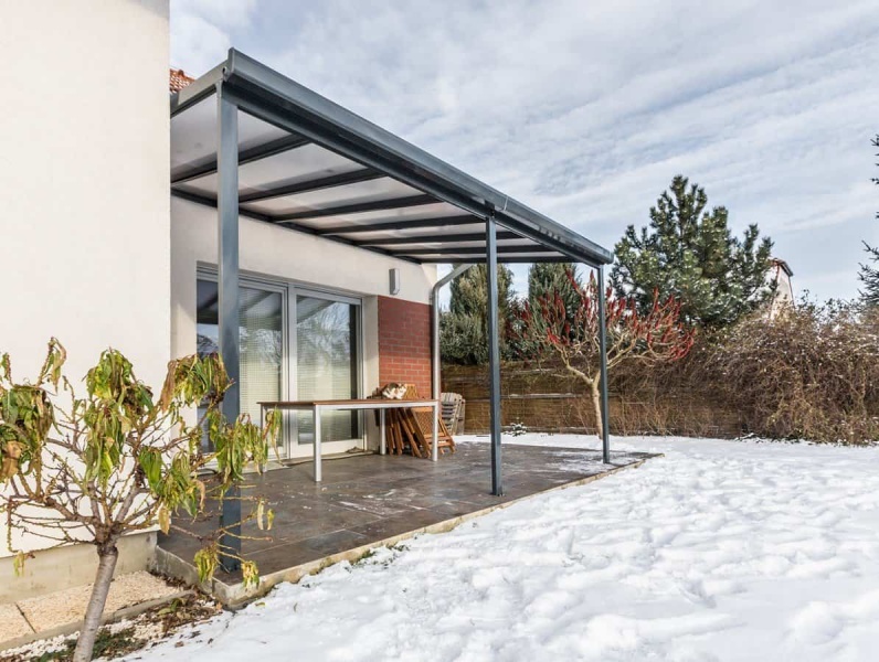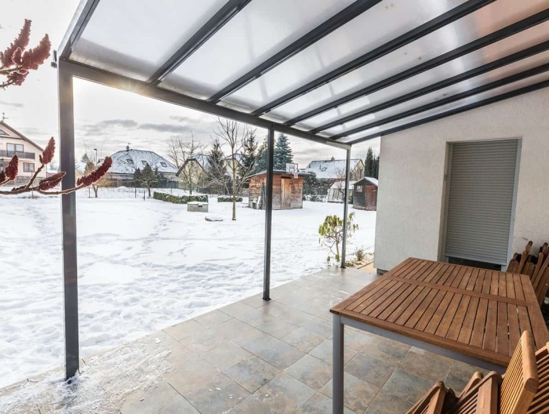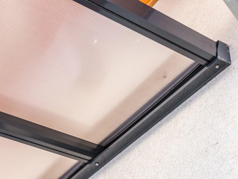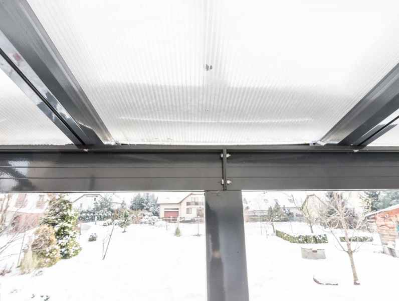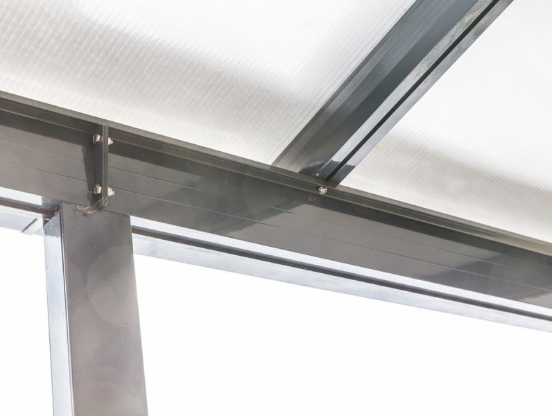 Na zastřešení je použit polykarbonát o tloušťce 10 mm, který má dlouhou životnost a zachovává si barevnou stálost (nežloutne). Polykarbonátové desky jsou zdravotně nezávadné.