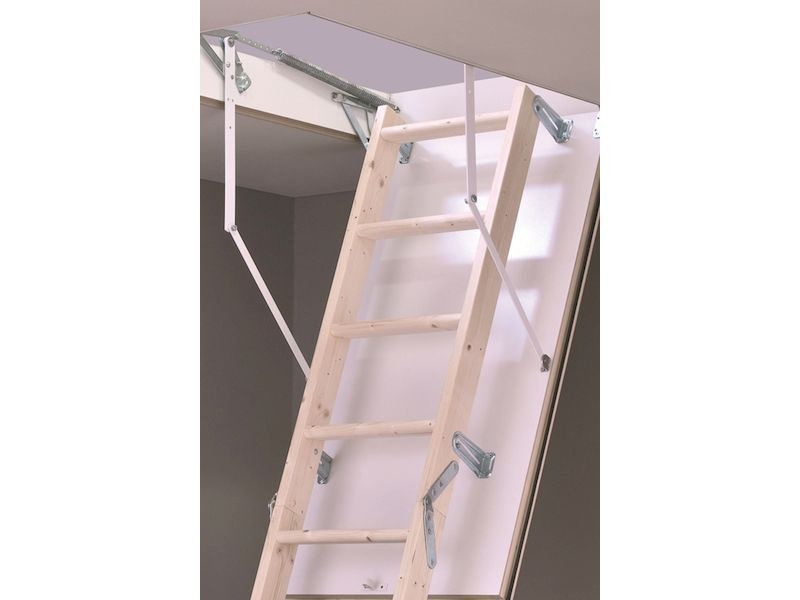 Tento model stropních schodů má celodřevěnou konstrukci. Zateplené víko s falcem a celoobvodovým těsněním je oboustranně opláštěn bílou HDF deskou. Na víku je namontován složený čtyřdílný žebřík.