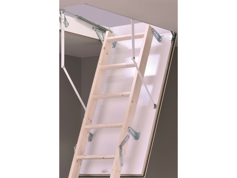 Půdní schody jsou opatřeny párem ocelových pružin, které brzdí pád při otevírání a napomáhají při zavírání.