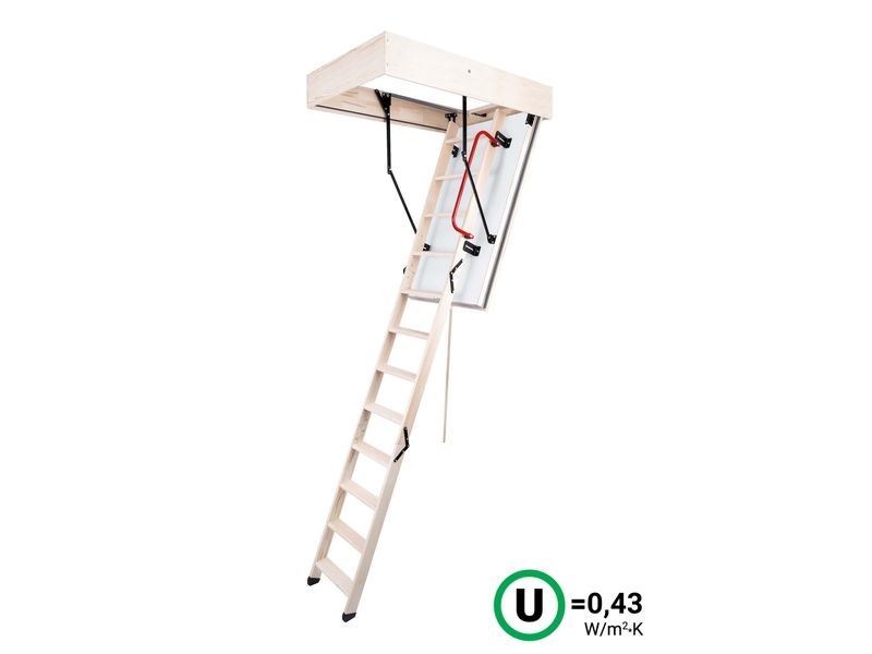 Dřevěné půdní schody jsou kombinací protipožární ochrany a vysokého zateplení třídy Polar. Slouží jako praktický a zateplený výlez do půdních prostor, kde je zapotřebí požární odolnost a velmi vysoké zateplení. Max. přípustná zátěž: 160 kg. Tloušťka izolace: 80 mm.