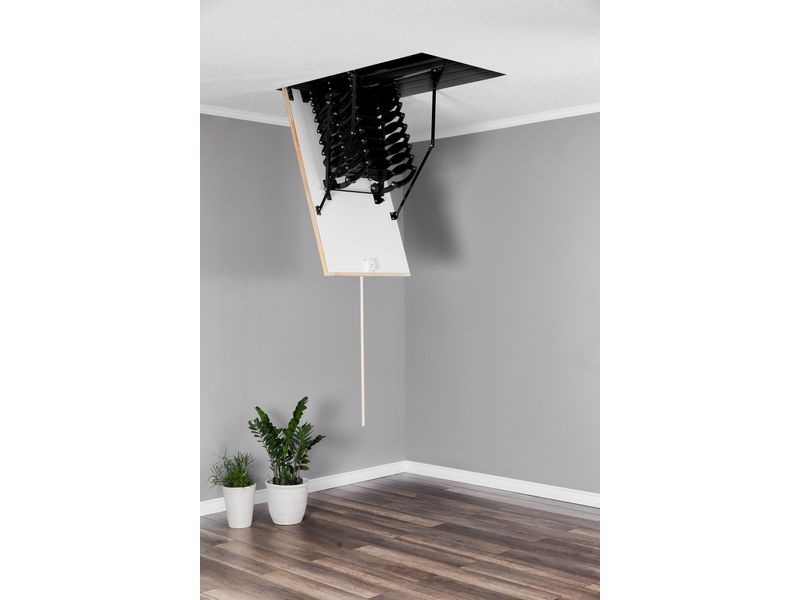 Půdní schody jsou vyráběny pro maximální výšku podlaží 290 cm a mají 145 mm vysoký kovový rám. Schody mají celokovový výlezový žebřík s nášlapy s protiskluzovou úpravu.