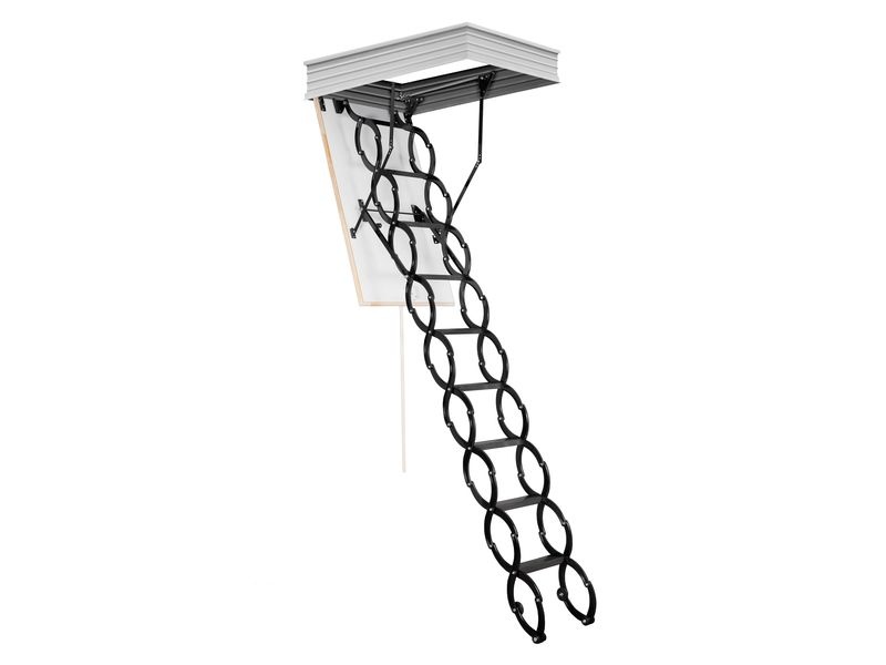 Půdní schody jsou vyráběny pro maximální výšku podlaží 290 cm a mají 145 mm vysoký kovový rám. Schody mají celokovový výlezový žebřík s nášlapy s protiskluzovou úpravu.
