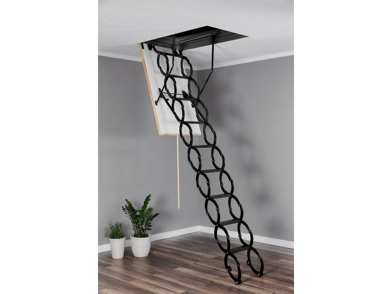 Součástí balení je stahovací tyč, sada pružin pro snadné otevírání a zavírání schodů a zavírací mechanismus (zámek). Půdní schody tedy stačí rozbalit a namontovat