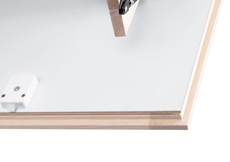 Dřevěné schody mají zateplené 46 mm silné víko, které je z pohledové strany opatřeno bílou HDF deskou. Víko je zatepleno 40 mm polystyrénem. díky tomu je součinitel prostupnosti tepla U= 0,85W/m2*K.