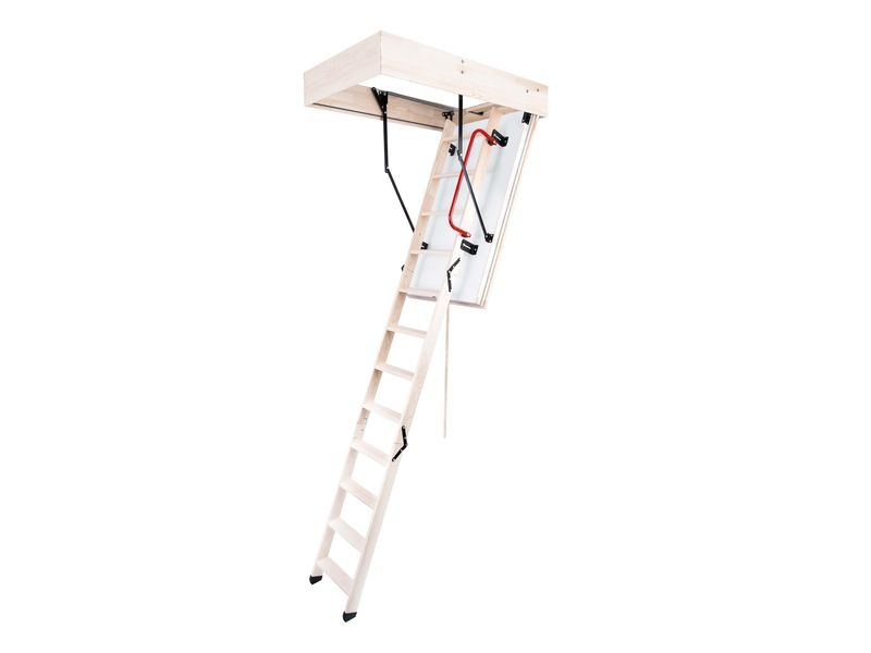 Dřevěné půdní schody slouží jako výlez do půdních prostor s dokonalým zateplením. Max. přípustná zátěž: 160 kg. Tloušťka izolace: 80 mm. Max. výška podlaží: 280 cm.
