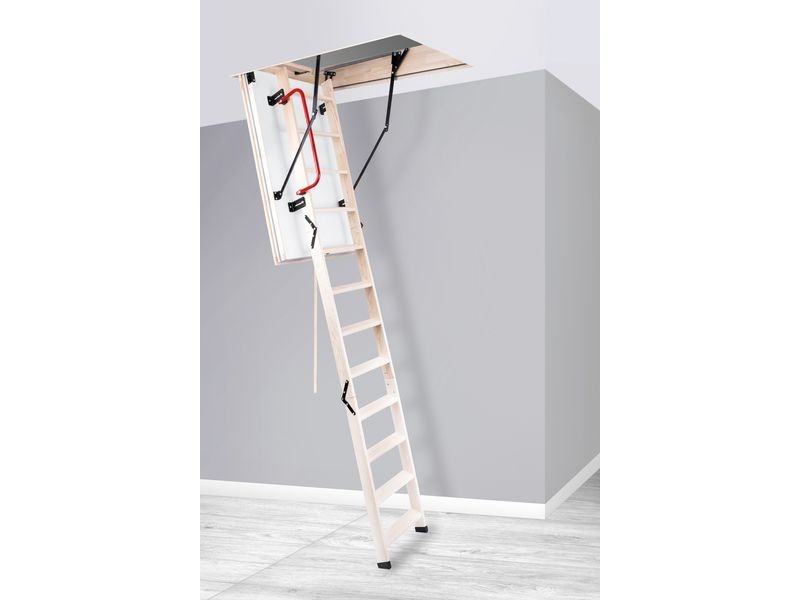 Dřevěné půdní schody slouží jako výlez do půdních prostor s dokonalým zateplením. Max. přípustná zátěž: 160 kg. Tloušťka izolace: 80 mm. Max. výška podlaží: 280 cm.