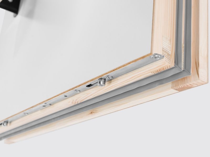 Půdní schody Polar Plus mají zateplené 86 mm silné víko, které je z obou stran opatřeno bílou HDF deskou s trojitým obvodovým těsněním. Víko je zatepleno 80 mm polystyrénem.