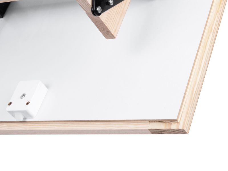 Půdní schody mají 26 mm silné víko a je zatepleno 20 mm polystyrénem. Víko je z pohledové strany opatřeno bílou HDF deskou.