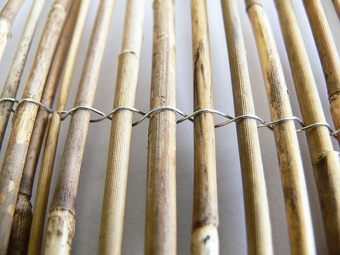 Rohož můžete instalovat také na stojící plot, stačí ji připevnit pevným vázacím drátem. V případě potřeby ji můžete upravit na požadovaný rozměr. Poté je třeba stébla znovu svázat vázacím drátem, kterým jsou štěpy spojeny, aby se vám rohož nerozpadla.