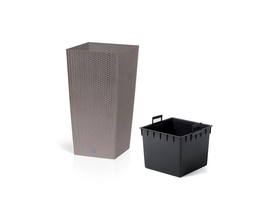 Plastový květináč je nejen praktickým, ale i estetickým prvkem, který skvěle doplní dům a zahradu, stejně jako veřejná prostranství. Povrch v imitaci ratanového výpletu oživí domácnost, okolí kolem domu i prostory hotelového salonku či veřejné kavárny.