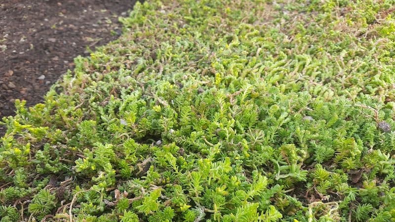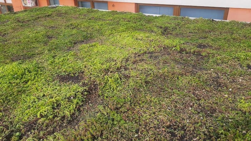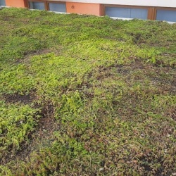 Takto jsme postupovali jeden pás po druhém a poslední již instalovali přímo ze žebříku. Pokládku rozchodníkových koberců jsme dělali o týden později, a toto již proběhlo bez problémů. Prvních pár dnů jsme střechu každý večer kropili. Pak přišlo pár deštivých dnů, díky nimž jsme byli bez práce. O dva týdny později začaly rostliny rozkvétat.
