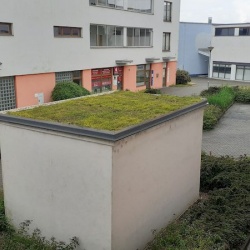 Tento trend nás postupně dovedl k tomu, že jsme se na loňské schůzi Společenství vlastníků jednotek domluvili a odsouhlasili instalaci zelené střechy na tomto objektu.