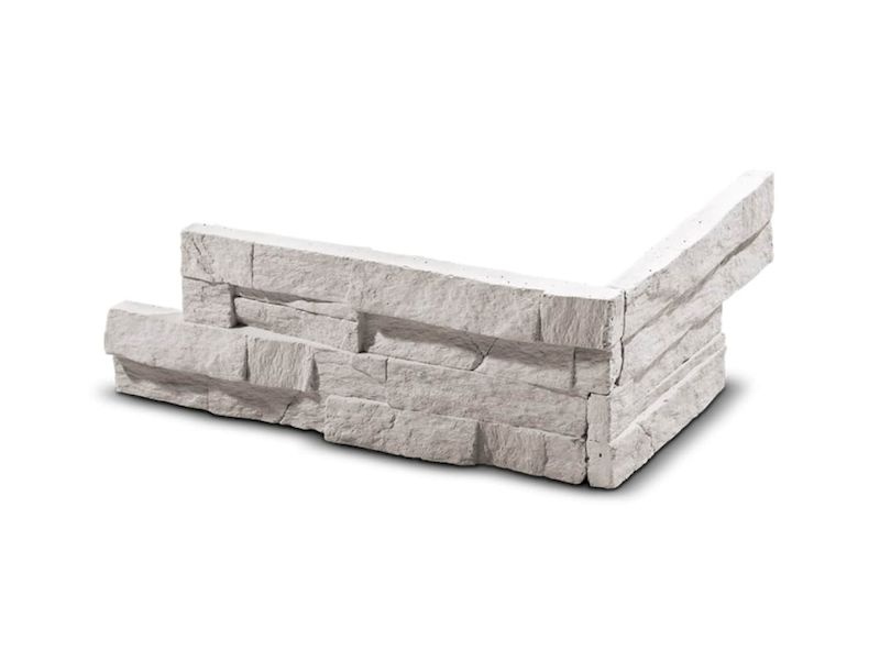 Rohový díl obkladového kamene Steinblau Vertigo v krémové barvě. Umožňuje snadné propojení rohových liní a stěn. Bezepspárová dlaždice zajišťuje snadnou instalaci betonových kamenů.