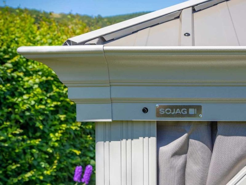 Sada závěsů je určena pro celý altán. Pokrývá všechny strany, přičemž závěsy jsou připevněny na jinou kolejnici než sítě proti hmyzu pomocí dvojitého kolejnicového systému. Tím zajišťují jednudušší manupulaci.