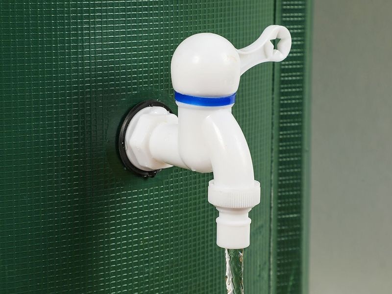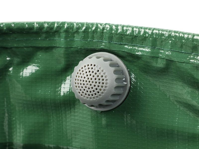 Sud je vyroben z odolného 600D PVC a podepřen rámem z 10 PVC tyčí (Ø 20 mm). Víko je vybaveno zipem a integrovanou mřížkou proti nečistotám, takže voda zůstává čistá. Praktické ventily umožňují použití jak s hadicí, tak s konví. Nechybí ani přepad, který zabrání přeplnění. Jednoduchý montážní systém umožní sud postavit během krátké chvíle a bez speciálního nářadí.