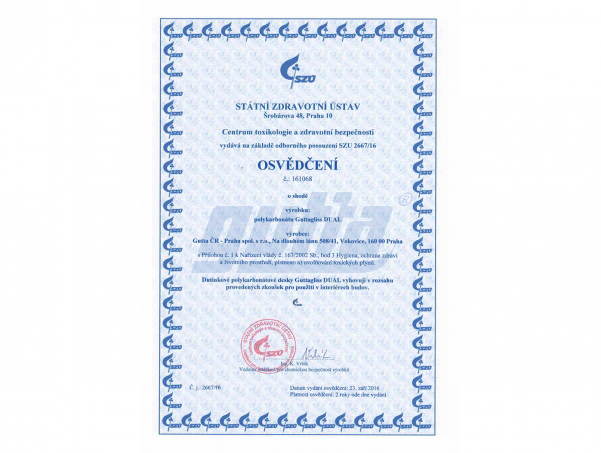 Zasklení vysokohustotním polykarbonátem s UV ochranou tloušťky 4 nebo 6 mm zajišťuje zvýšené tepelně izolační vlastnosti oproti běžně prodávaným skleníkům. Součástí skleníku je též větrací jedno střešní okno (u 4 m verze 2 střešní okna) vzpěry, které zpevňují skleník před působením větru a sněhu.